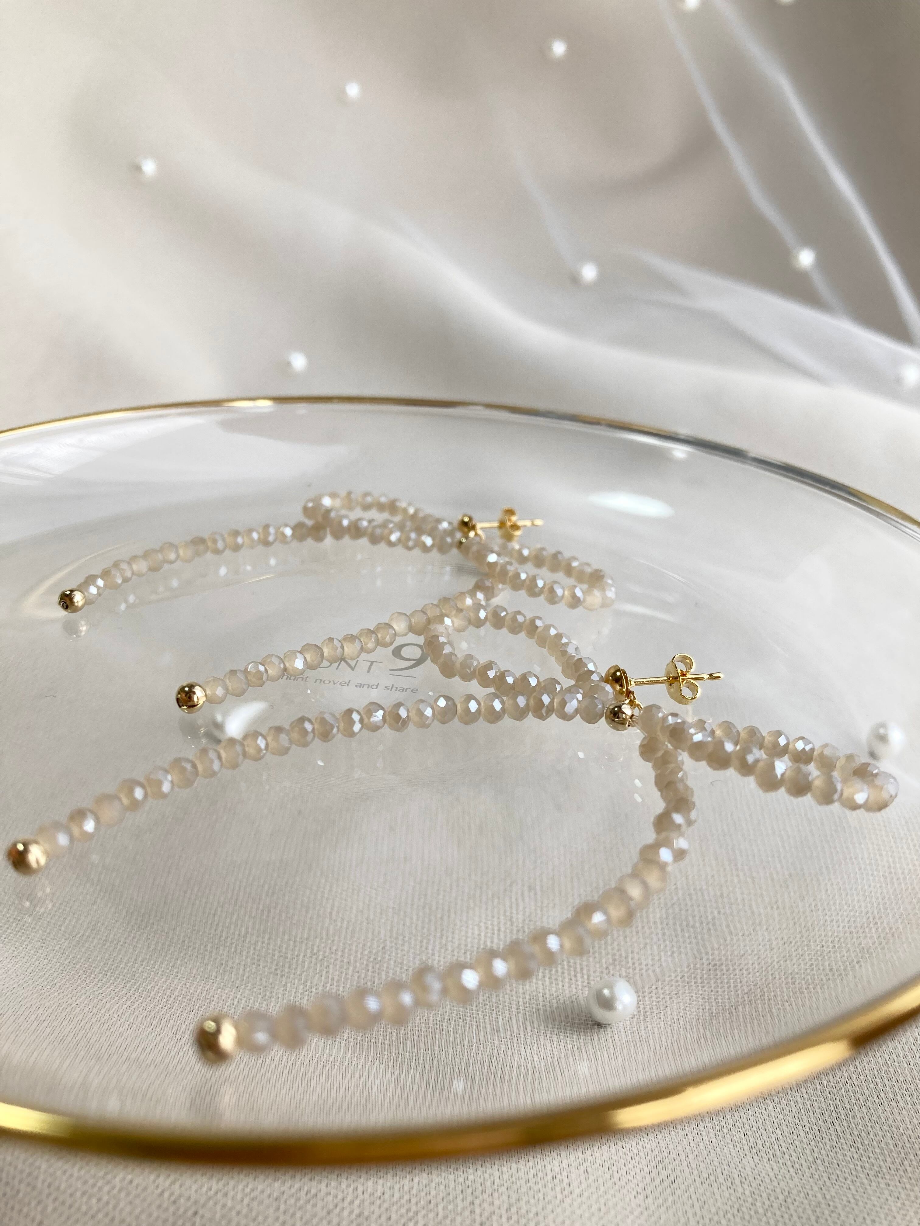 ガラスリボンピアス(ベージュ)アレルギー対応金具